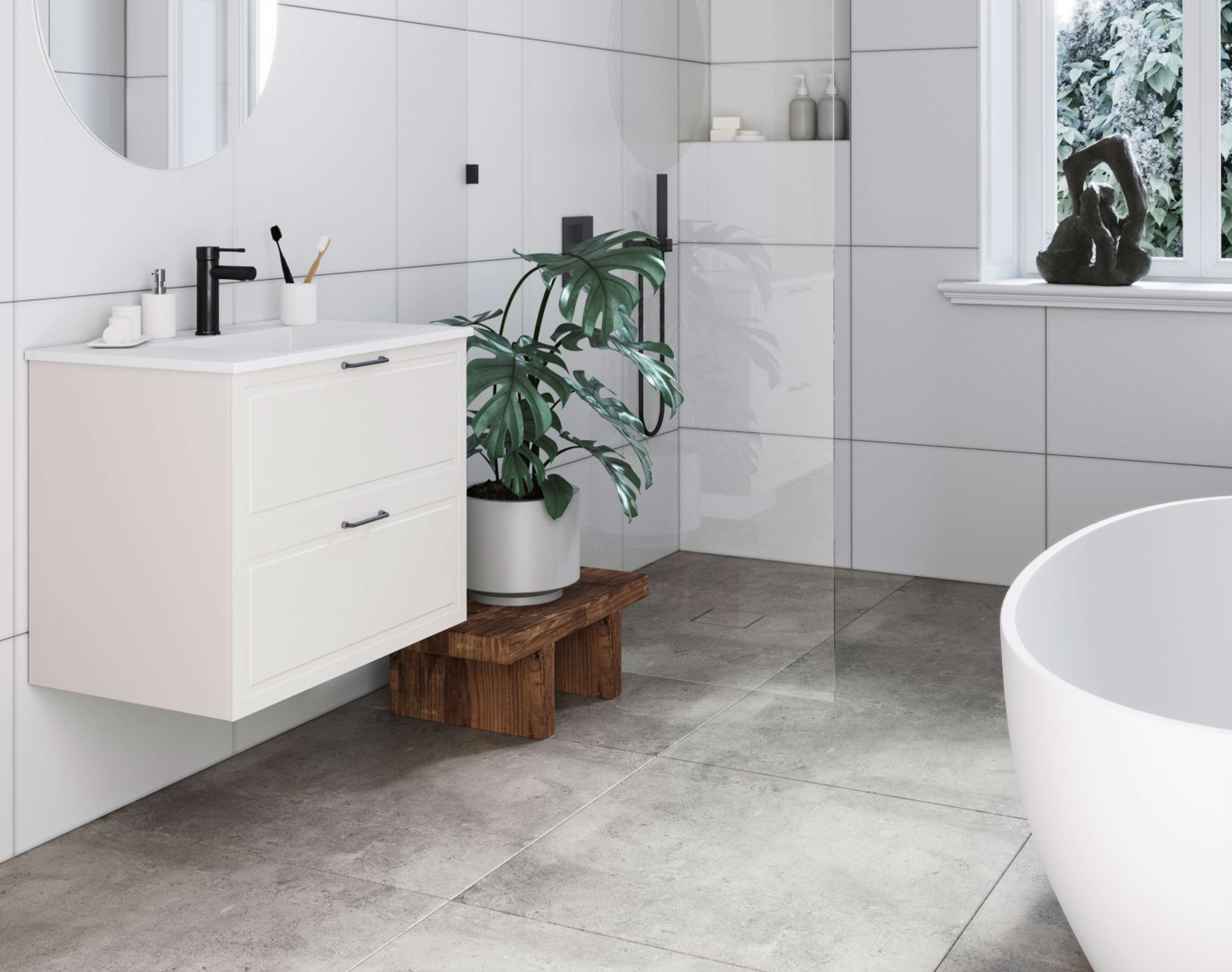 Du bruker badet flere ganger hver dag. Du starter og avslutter dagene dine der. Noen mener kanskje at det er det viktigste rommet i boligen. Du vil at det skal være et rom fylt av ro. Det ønsker deg velkommen om morgenen når du går inn i dusjen for å våkne skikkelig, og om kvelden når du pusser tenner før leggetid.