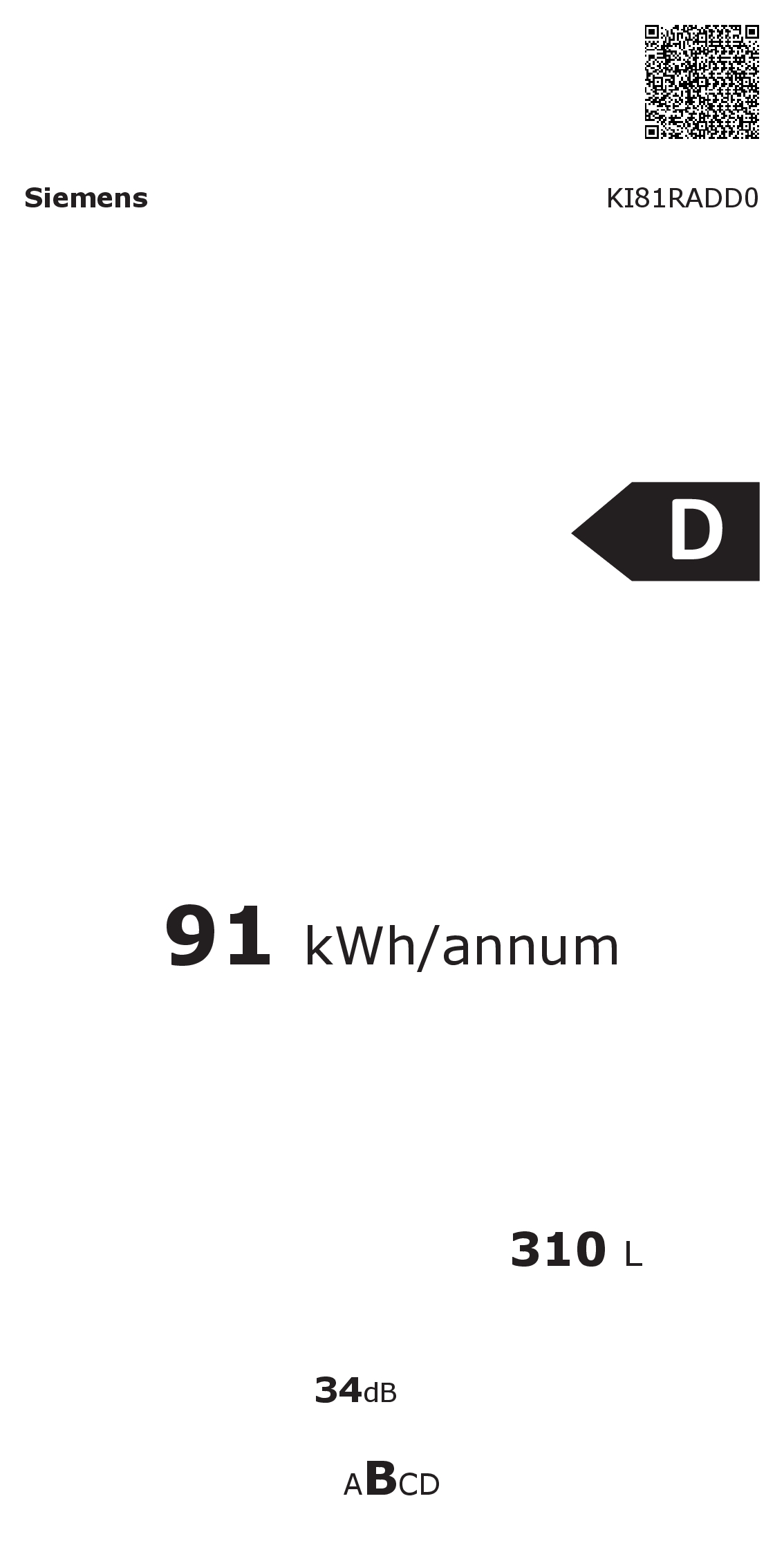SIEMENS Kjøleskap 178cm KI81RADD0