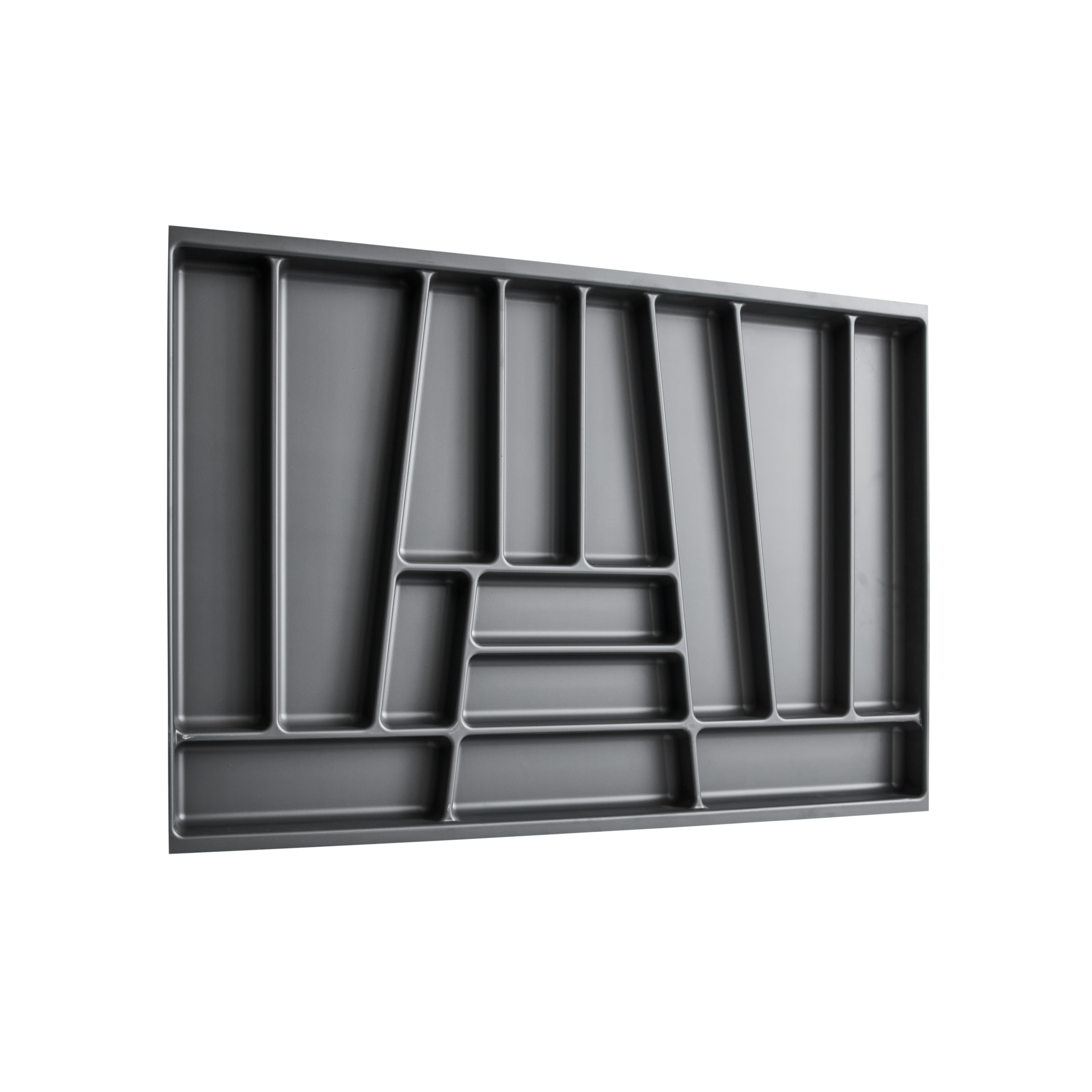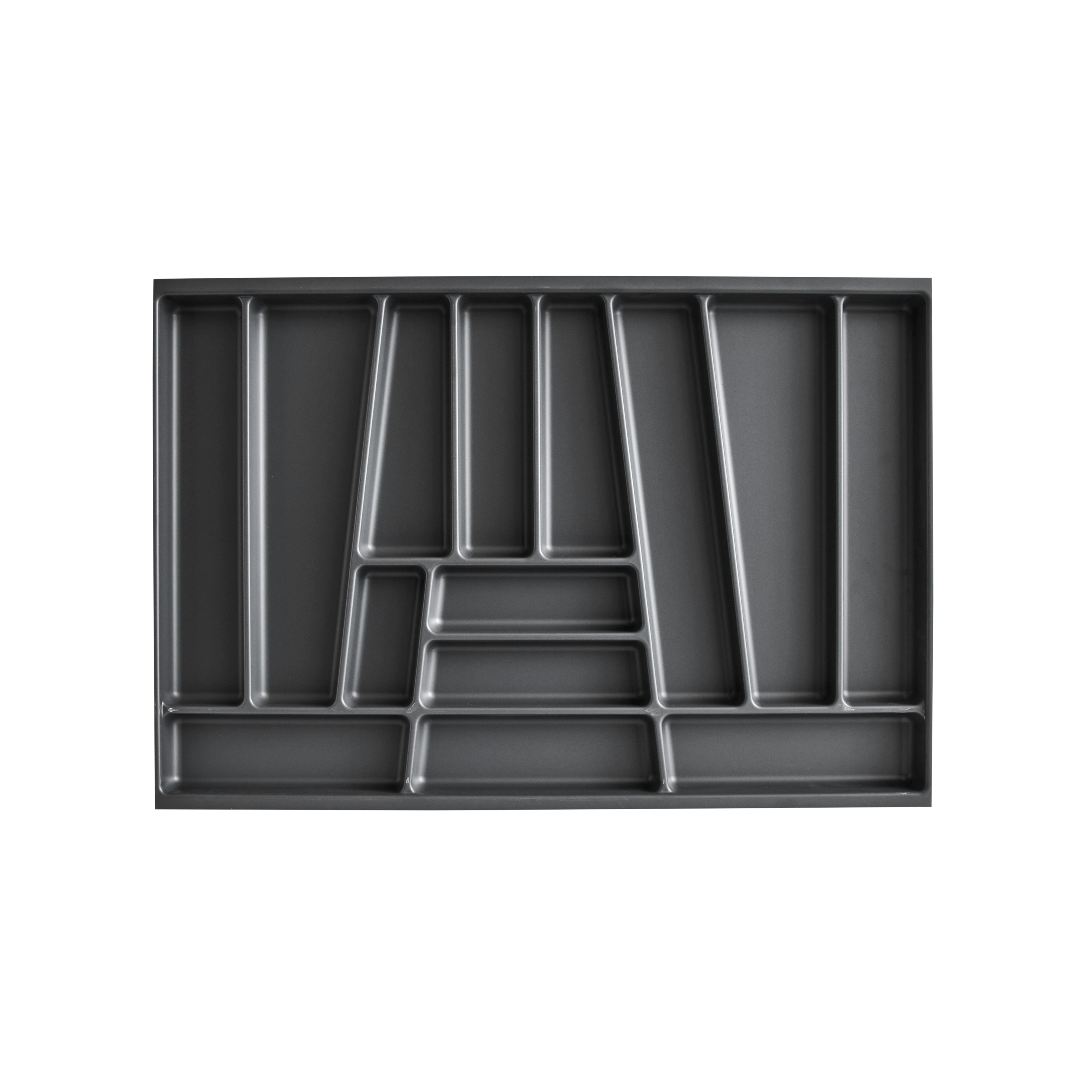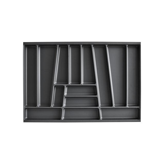 Møt vårt bestikkinnlegg i anthracite, en praktisk løsning for å organisere kjøkkenskuffene dine. Dette bestikkinnlegget måler 100 x 65 cm og gir deg en ryddig og oversiktlig oppbevaring av bestikk og kjøkkenredskaper. Med sitt stilrene design passer det perfekt inn i ethvert kjøkken, og gjør hverdagen din litt enklere.