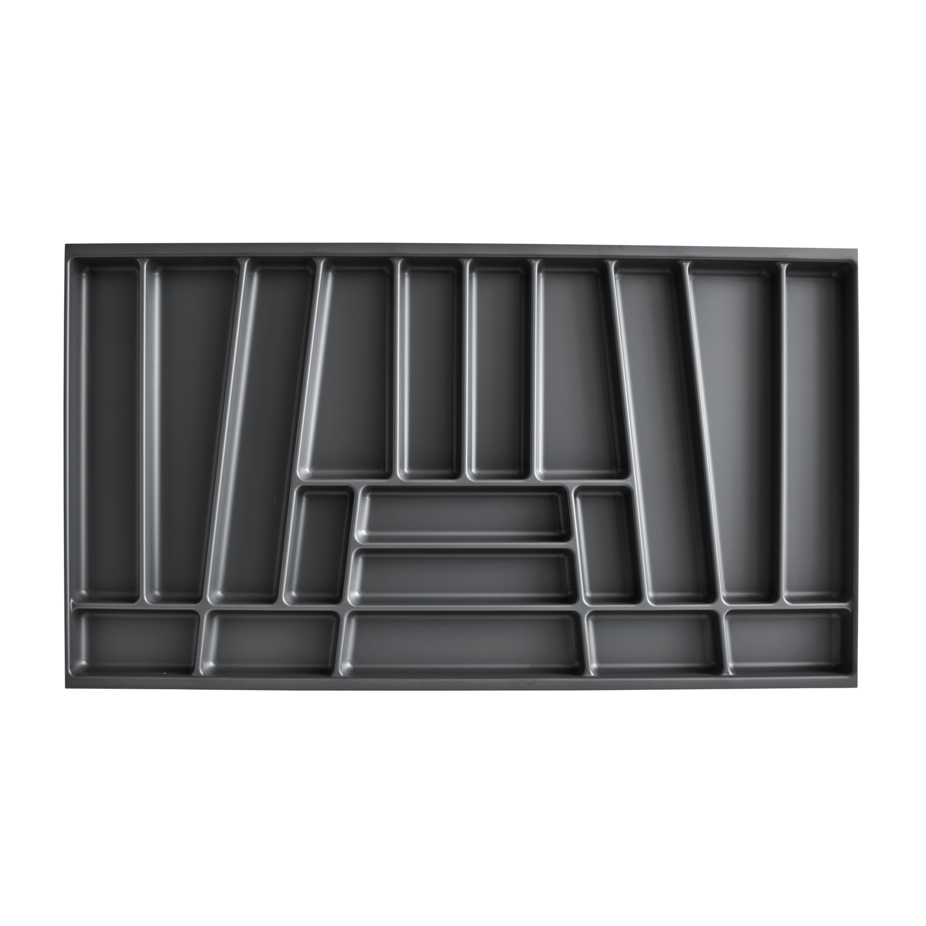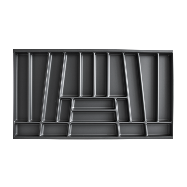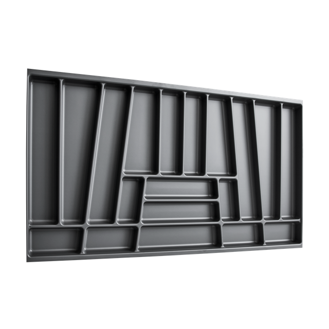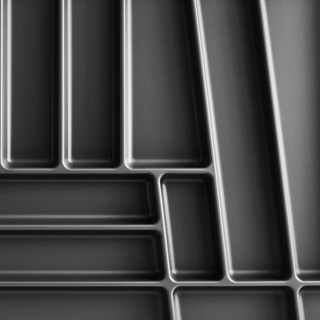 Vårt bestikkinnlegg i antrasitt er den ideelle løsningen for å holde kjøkkenskuffene dine ryddige og organiserte. Med sine mange rom gir det deg muligheten til å sortere bestikk og redskaper på en måte som gjør dem lett tilgjengelige når du trenger dem. Den slitesterke plasten sikrer at innlegget tåler daglig bruk, mens den elegante antrasittfargen gir et moderne preg til kjøkkenet ditt.