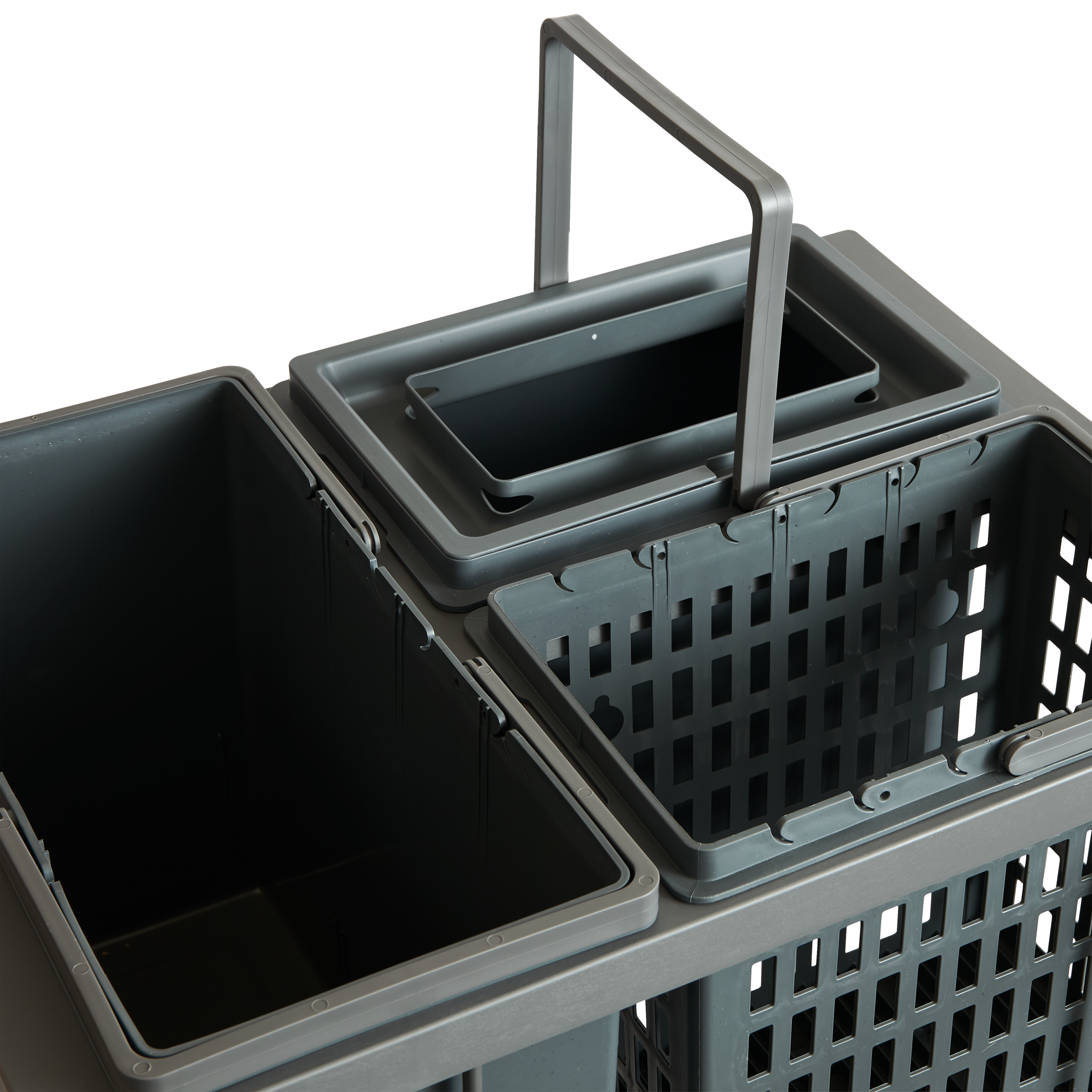 Vårt Cube waste system i antrasitt er en ideell løsning for deg som ønsker å kombinere funksjonalitet med stil. Med sin kompakte design, er det enkelt å integrere i ethvert kjøkken, uansett størrelse. Systemet er designet for å gjøre avfallshåndtering enklere og mer effektiv, slik at du kan fokusere på det som virkelig betyr noe i hverdagen.