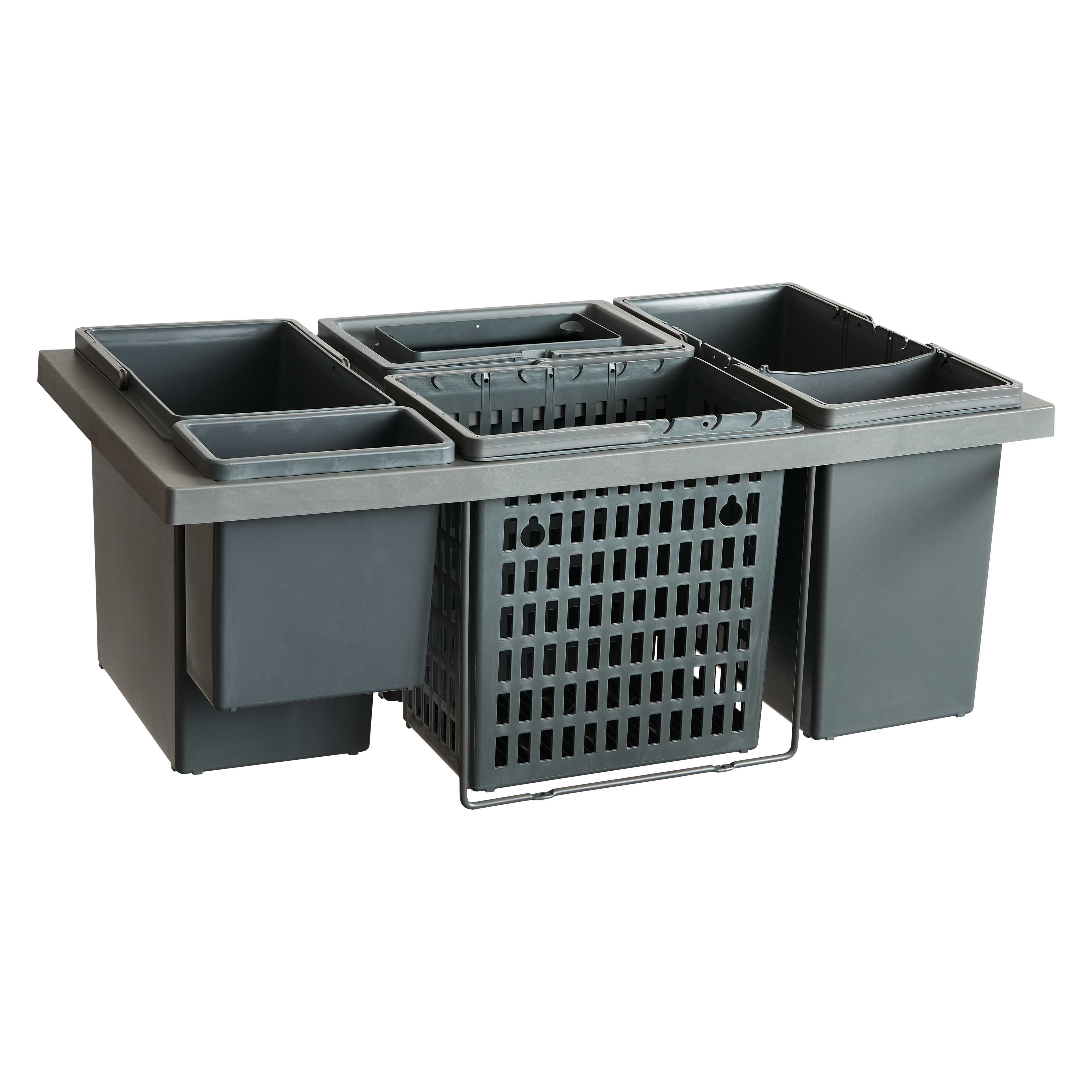 Systemet er utstyrt med flere rom for enkel sortering av avfall, noe som gjør det lettere å holde kjøkkenet ryddig og organisert. Den solide konstruksjonen sikrer at det tåler daglig bruk, mens det moderne designet gir et stilrent preg til kjøkkenet ditt. For å bevare systemets utseende, unngå direkte eksponering for fuktighet og varme.