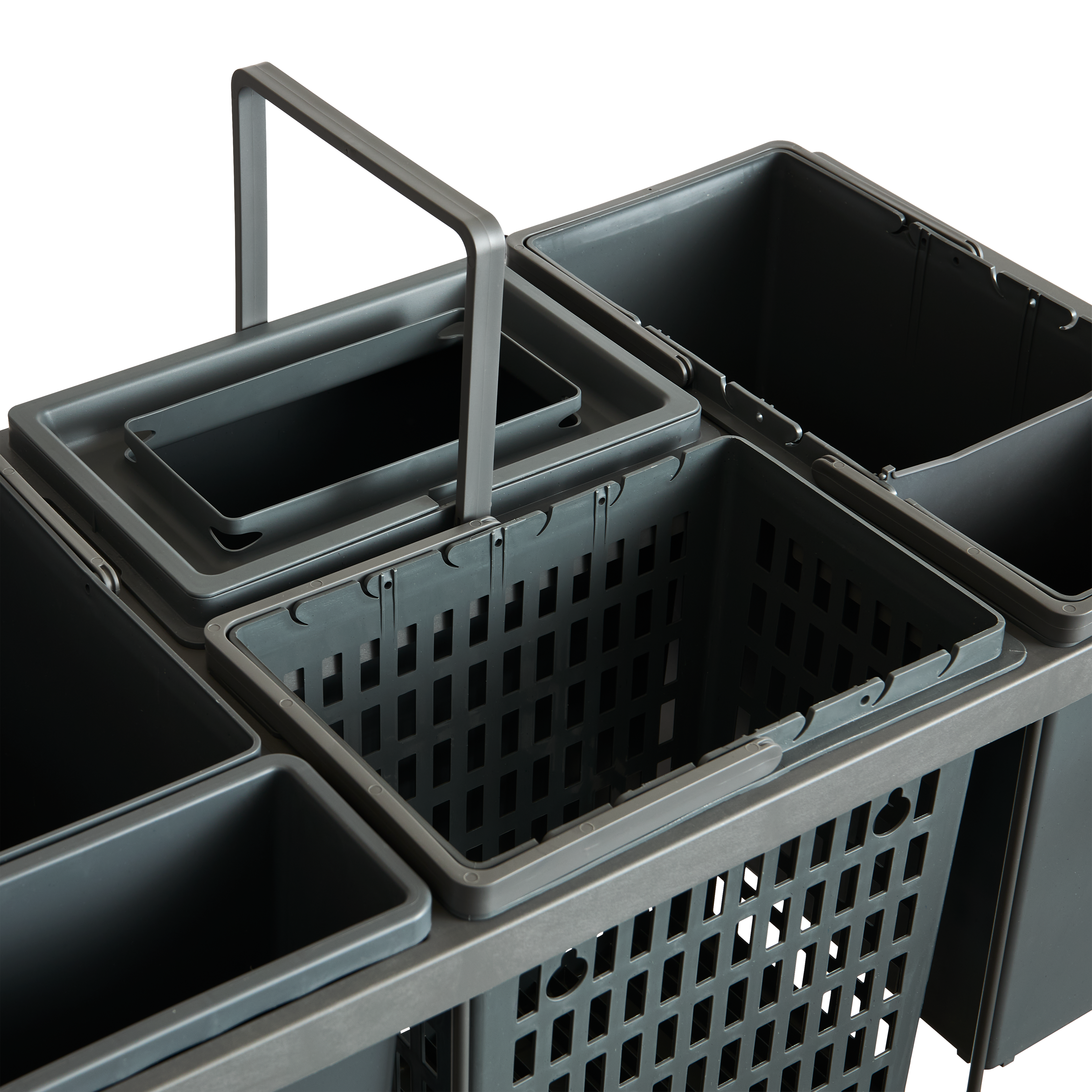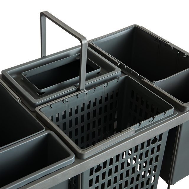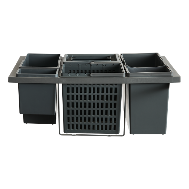 - Solid konstruksjon i antrasitt: Vårt avfallssystem er laget av slitesterke materialer som sikrer lang levetid og stabilitet i hverdagen.