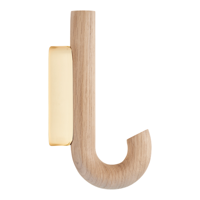 Hook mini er omtrent halvparten så stor som den større Hook-knaggen, og er et diskret og vakkert tilskudd til hjemmet. Designet er veldig umiddelbart og innbyr umiddelbart til å henge opp yttertøy, vesker eller paraplyer i entreen. Hook mini kan også plasseres på kjøkkenet som en tjener til kjøkkenhåndklær og forklær eller brukes til håndklær og badekåper på badet. Krokene fås i svart eik, varm valnøtt eller i hvitpigmentert eik med matt lakk - alle med vakre tredetaljer. I tillegg finnes beslagene i messing, krom og svart.