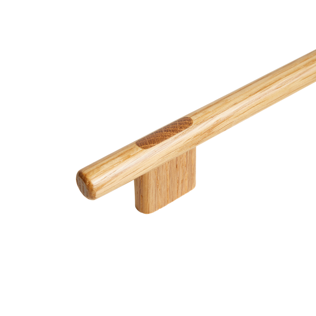 Vårt Join-håndtak i eik er mer enn bare et funksjonelt element; det er en stilfull detalj som løfter hele rommet. Med sin senter-til-senter avstand på 240 mm, passer det perfekt til både store og små skapdører. Den naturlige eiken gir en varm og innbydende følelse, mens den myke formen sikrer et komfortabelt grep hver gang du åpner skapet.