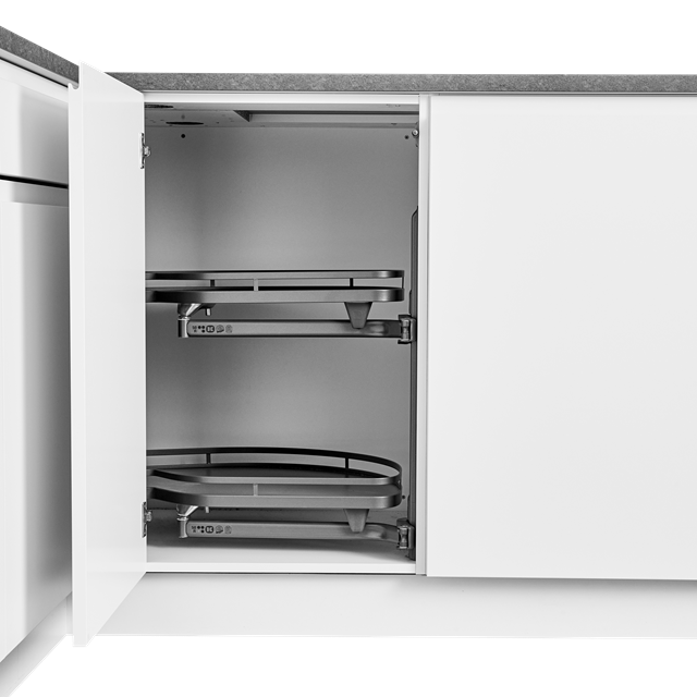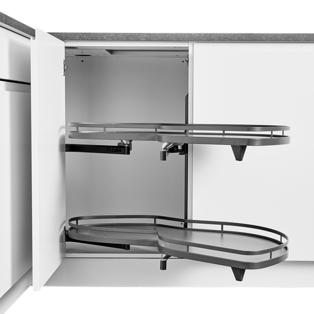 Oppdag vår Carousel Lemans kjøkkenkarusell, en smart løsning for å maksimere lagringsplassen i hjørneskap. Med sitt stilige antrasittdesign passer den perfekt inn i moderne kjøkken. Karusellen er 60 cm bred og har to roterende hyller, ideell for oppbevaring av gryter, kjøkkenapparater eller andre nødvendigheter. Den gir enkel tilgang til alt du trenger, uten å måtte grave dypt inn i skapet.