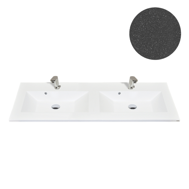 Dobbeltvasken KUMA Lava 52/30 er designet for å løfte baderomsopplevelsen med sin kombinasjon av slitesterkt granulon-materiale og elegant natthimmelmatt finish. Vaskens romslige dimensjoner (1220 x 545 x 15 mm) gir god plass til alt du trenger på badet, noe som sikrer en smidig og effektiv daglig rutine.