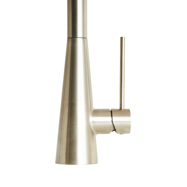 - Slitesterk børstet kromfinish. Materialet av høy kvalitet motstår anløpe og korrosjon, slik at kranen forblir et flott innslag på kjøkkenet i årevis.