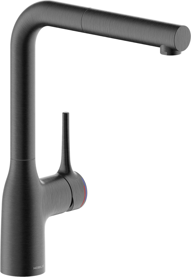 Kjøkkenkranen Nobili Mania er designet for å heve både stilen og funksjonaliteten på kjøkkenet ditt. Den gunmetalfargede finishen gir ikke bare et moderne og sofistikert utseende, men sikrer også holdbarhet, noe som gjør den til et praktisk valg for daglig bruk. L-munnstykket gir fleksibilitet, slik at du enkelt kan fylle store gryter eller skylle oppvasken med presisjon.