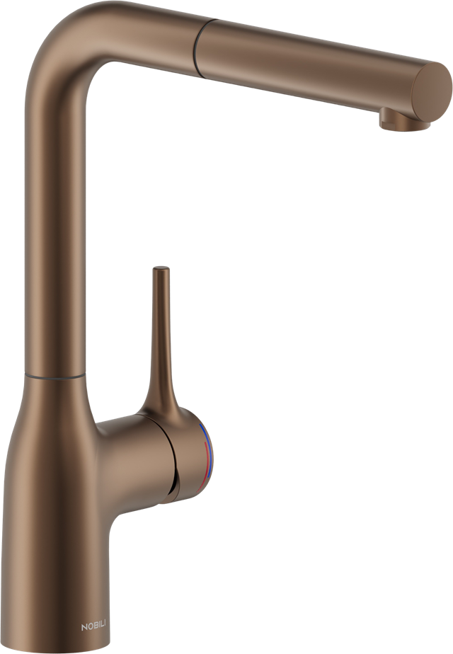 Kjøkkenkranen Nobili Mania kombinerer stil og funksjonalitet, noe som gjør den til et ideelt valg for ethvert moderne kjøkken. Kranens kobberfinish tilfører et snev av luksus, samtidig som den slitesterke konstruksjonen sørger for at den tåler daglig bruk. L-munnstykket gir fleksibilitet og bekvemmelighet, noe som gjør kjøkkenarbeidet mer effektivt og behagelig.
