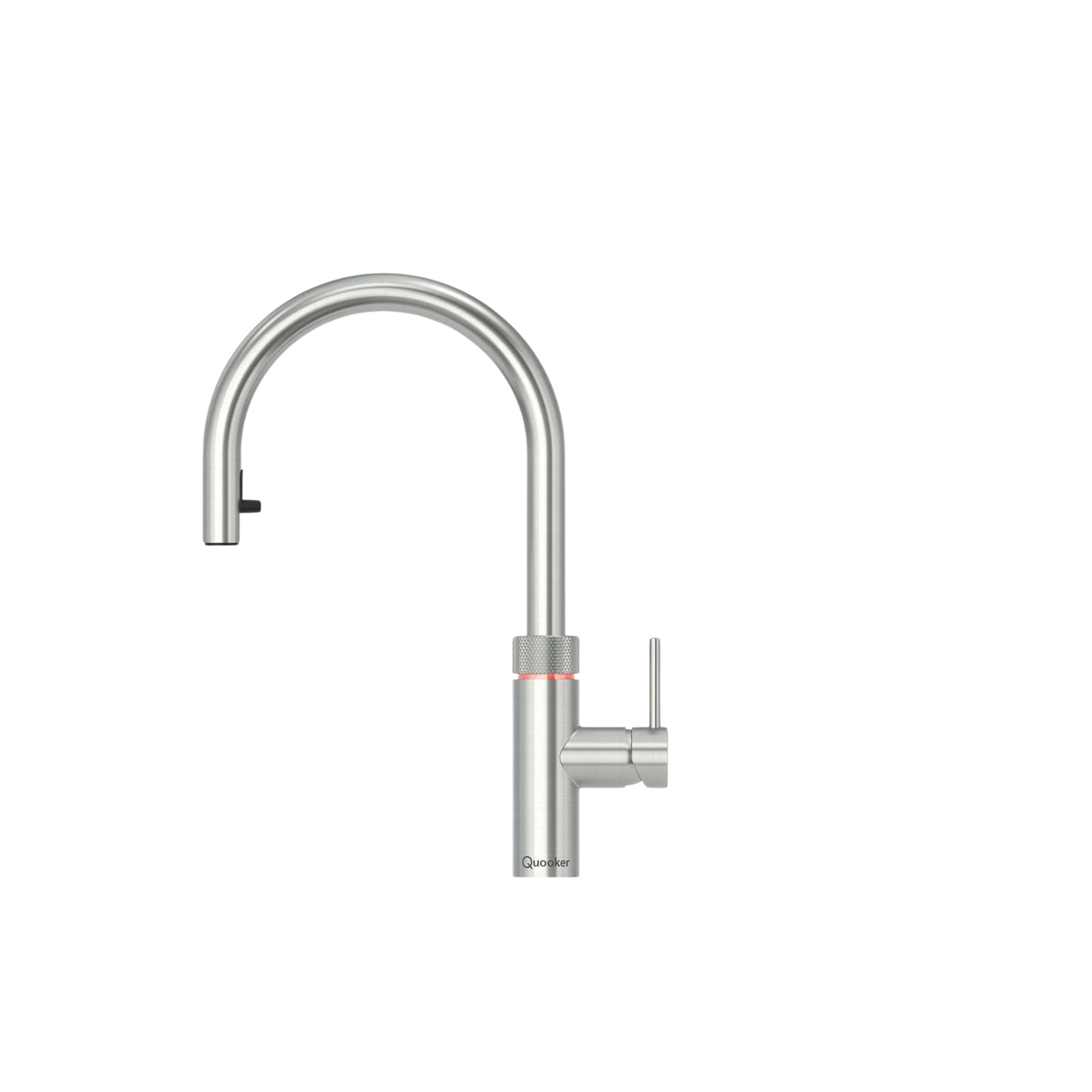 Vi introduserer Quooker Flex-kranen fra Kvik, en perfekt blanding av innovasjon og stil for kjøkkenet ditt. Kranen er laget av førsteklasses rustfritt stål og har et elegant design som utfyller ethvert moderne kjøkken. Med en beholder på 3 liter gir den øyeblikkelig kokende vann, noe som gjør hverdagslige oppgaver som å koke pasta eller tilberede te raskt og enkelt. Den fleksible uttrekkbare slangen er praktisk og gjør det enkelt å komme til i alle hjørner av vasken. Gjør kjøkkenopplevelsen din enda bedre med denne allsidige og stilige kranen.