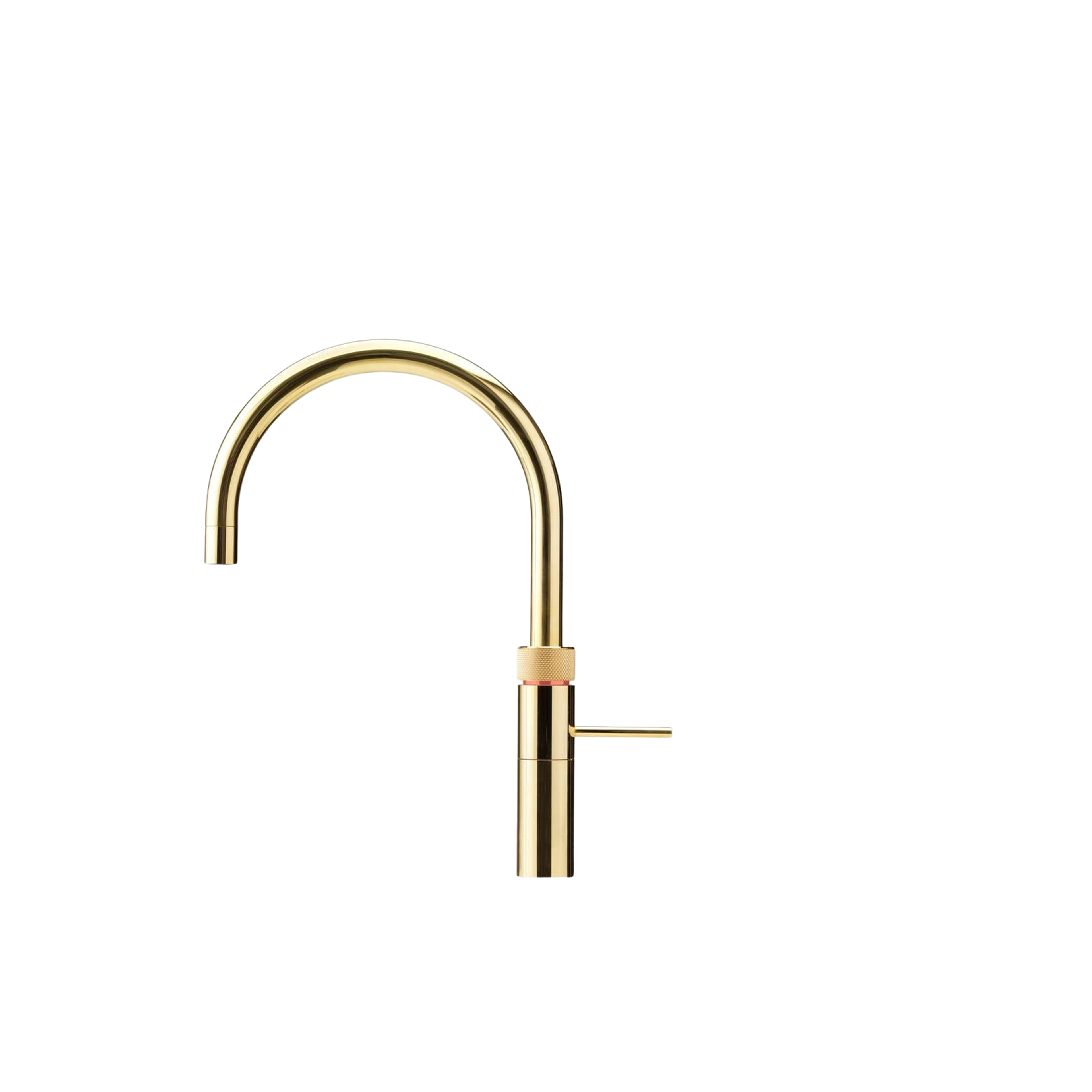 Vi introduserer Quooker Fusion Round kran i messing fra Kvik, en perfekt blanding av stil og funksjonalitet til kjøkkenet ditt. Denne elegante kranen, med sin elegante messingfinish, måler 366 mm i høyden og er designet for å passe sømløst inn i ethvert moderne kjøkken. Quooker Fusion Round gir deg bekvemmeligheten av øyeblikkelig kokende vann, noe som gjør hverdagslige oppgaver som matlaging og rengjøring mer effektive. Den sofistikerte designen tilfører kjøkkenet et snev av luksus, noe som gjør den både estetisk og praktisk.