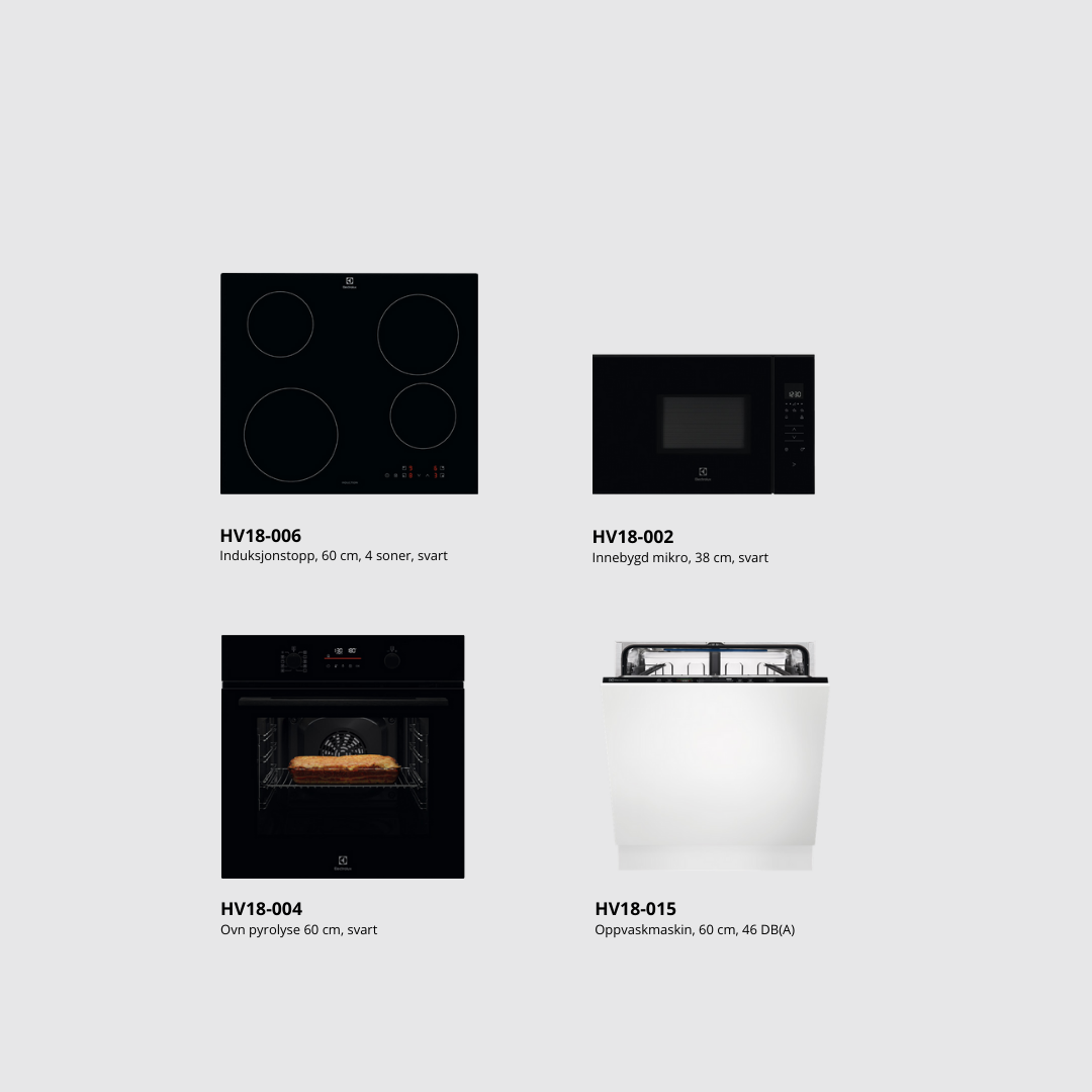 Få AEG eller Electrolux hvitevarer til kr 35 000 ved kjøp av kvik varer (skap, benkeplate, vask) til kr 190 000